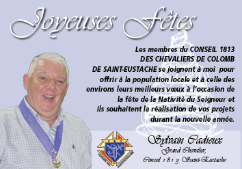 Catégories Non classé CONSEIL 1813 DES CHEVALIERS DE COLOMB DE SAINT-EUSTACHE Auteur de l’article Par pub_content_publisher Date de l’article 22 décembre 2022