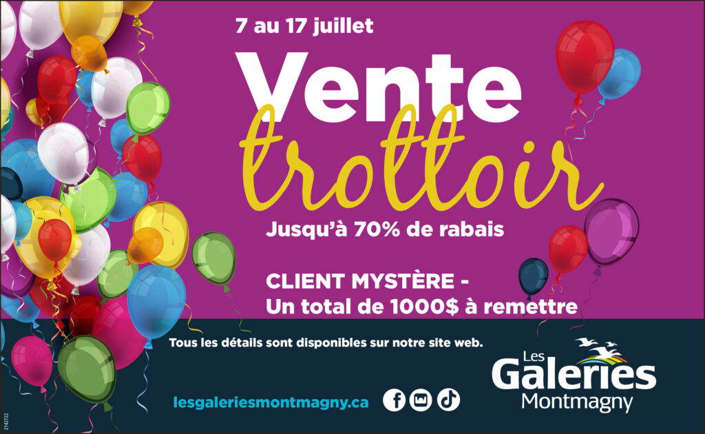 Catégories Non classé VENTE TROTTOIR GALERIES MONTMAGNY CL11107 Auteur de l’article Par pub_content_publisher Date de l’article 6 juillet 2022