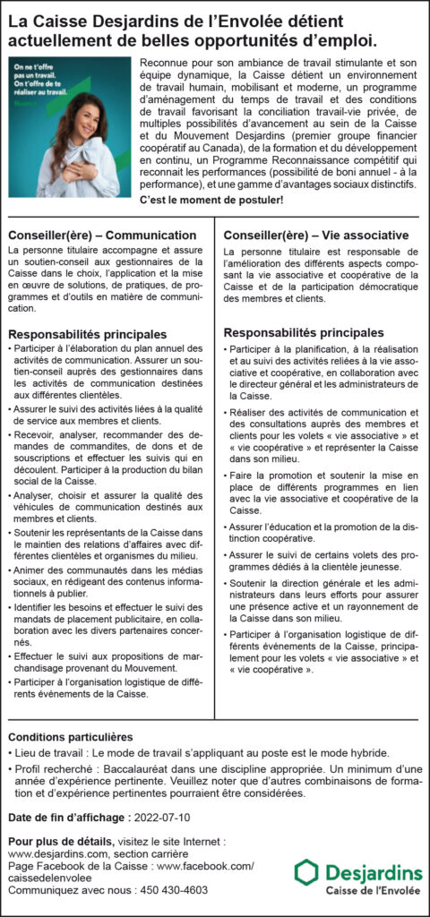 Catégories Non classé CAISSE DESJARDINS ENVOLÉE CL06120 Auteur de l’article Par pub_content_publisher Date de l’article 4 juillet 2022
